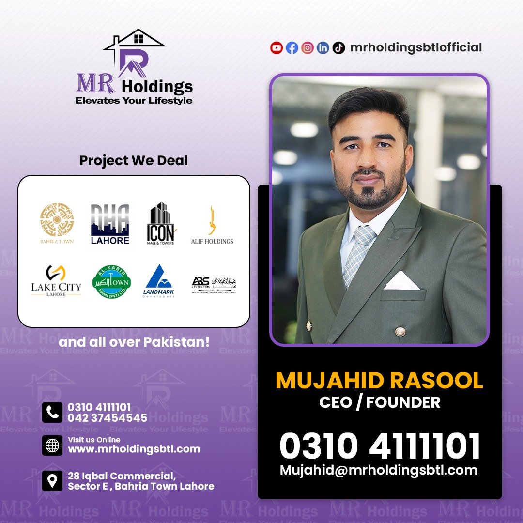 MR HOLDINGS Real Estate: As a leading name in Pakistan’s real estate industry, MR Holdings offers modern, luxurious, and affordable living spaces designed to elevate your lifestyle.